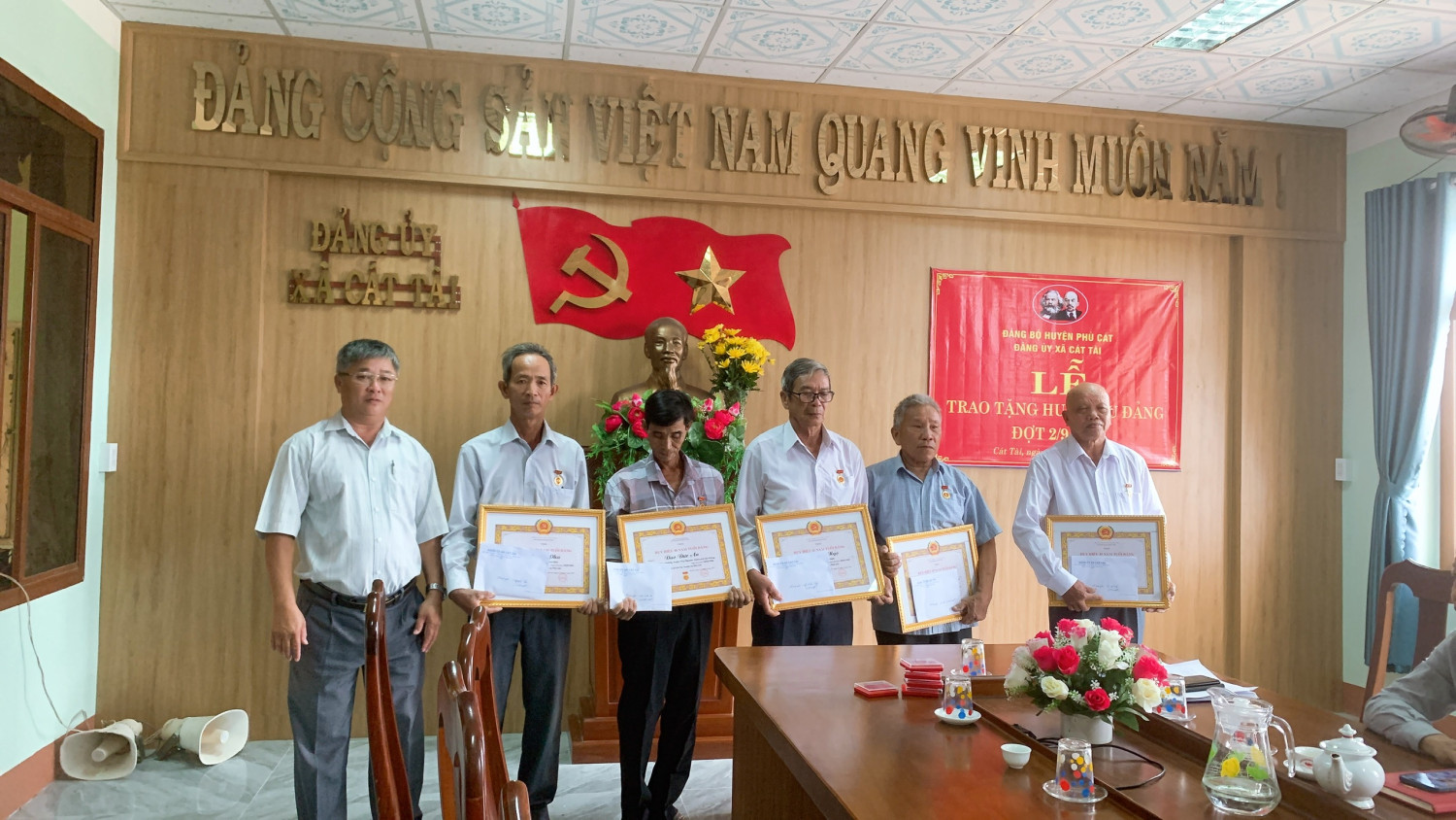 Đ/c Hồ Ngọc Liên – HUV, Bí thư Đảng ủy, CT HĐND xã trao Huy hiệu Đảng cho các đảng viên Sáng ngày 06/9/2024, Đảng ủy xã Cát Tài tổ......