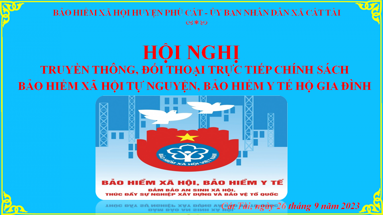Hội nghị truyền thông, đối thoại trực tiếp chính sách BHXH tự nguyện, BHYT hộ gia đình tại xã Cát Tài Ngày 26/09/2023......