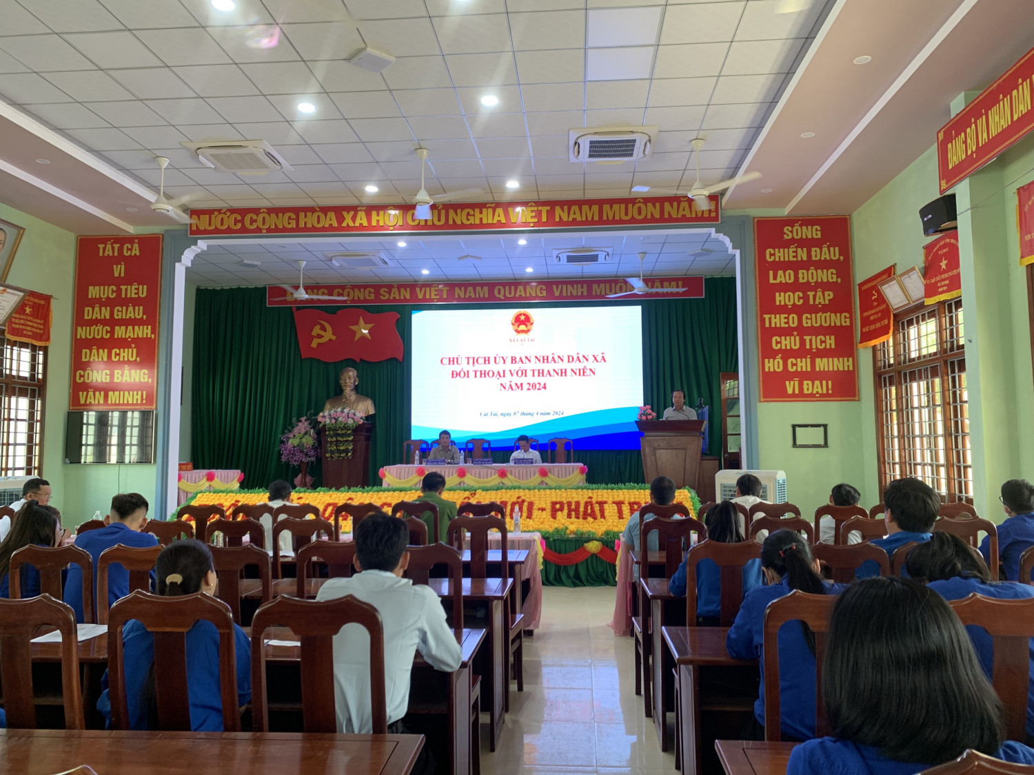 Ngày 07/4/2024 UBND xã Cát Tài tổ chức Chương trình Đối thoại giữa Chủ tịch Ủy ban nhân dân xã với đoàn viên thanh niên năm 2024.