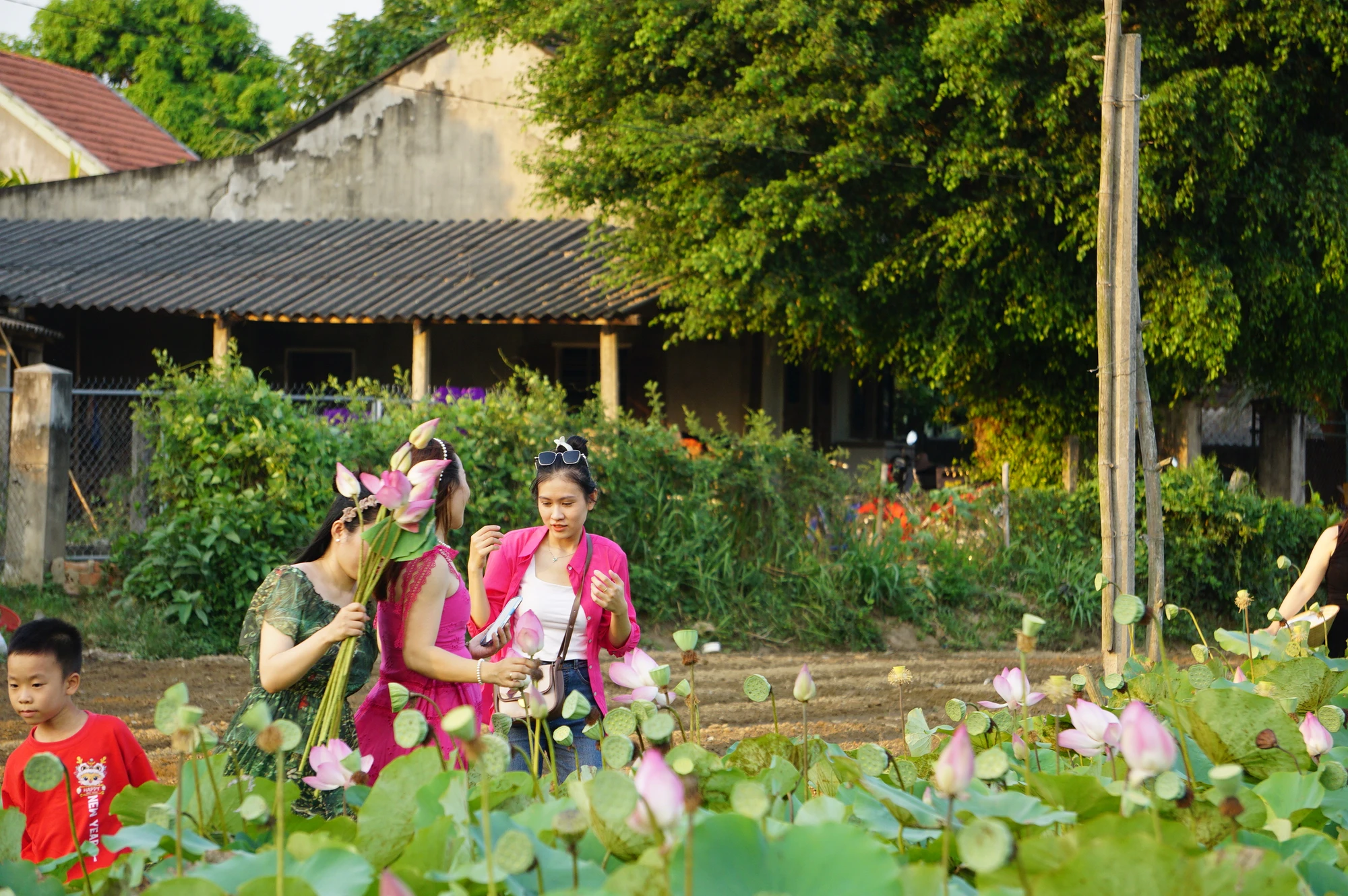 Khách du lịch hào hứng với những khuôn hình bên sen