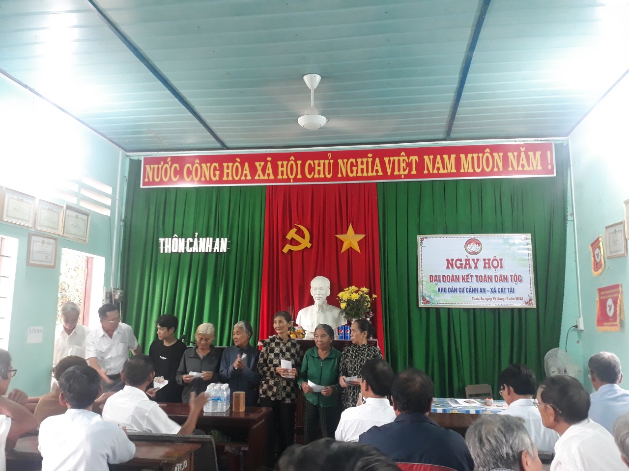 Trong không khí nhân dân cả nước sôi nổi tham gia các phong trào thi đua yêu nước, phấn đấu thực hiện thắng lợi các nhiệm vụ phát triển kinh tế – xã hội, an ninh quốc phòng năm 2023; Là năm thứ 4 thực hiện Nghị quyết Đại hội khóa XIV Đảng bộ xã. Hòa chung với khí thế ấy, Ban công tác Mặt trận 08 thôn trên địa bàn xã long trọng tổ chức lễ kỷ niệm 93 năm ngày truyền thống Mặt trận tổ quốc Việt Nam, ngày hội Đại đoàn kết toàn dân tộc và tổng kết đánh giá kết quả một năm thực hiện cuộc vận động “Toàn dân đoàn kết xây dựng nông thôn mới, đô thị văn minh”, thực hiện các phong trào thi đua yêu nước, các cuộc vận động do Mặt trận các cấp phát động.